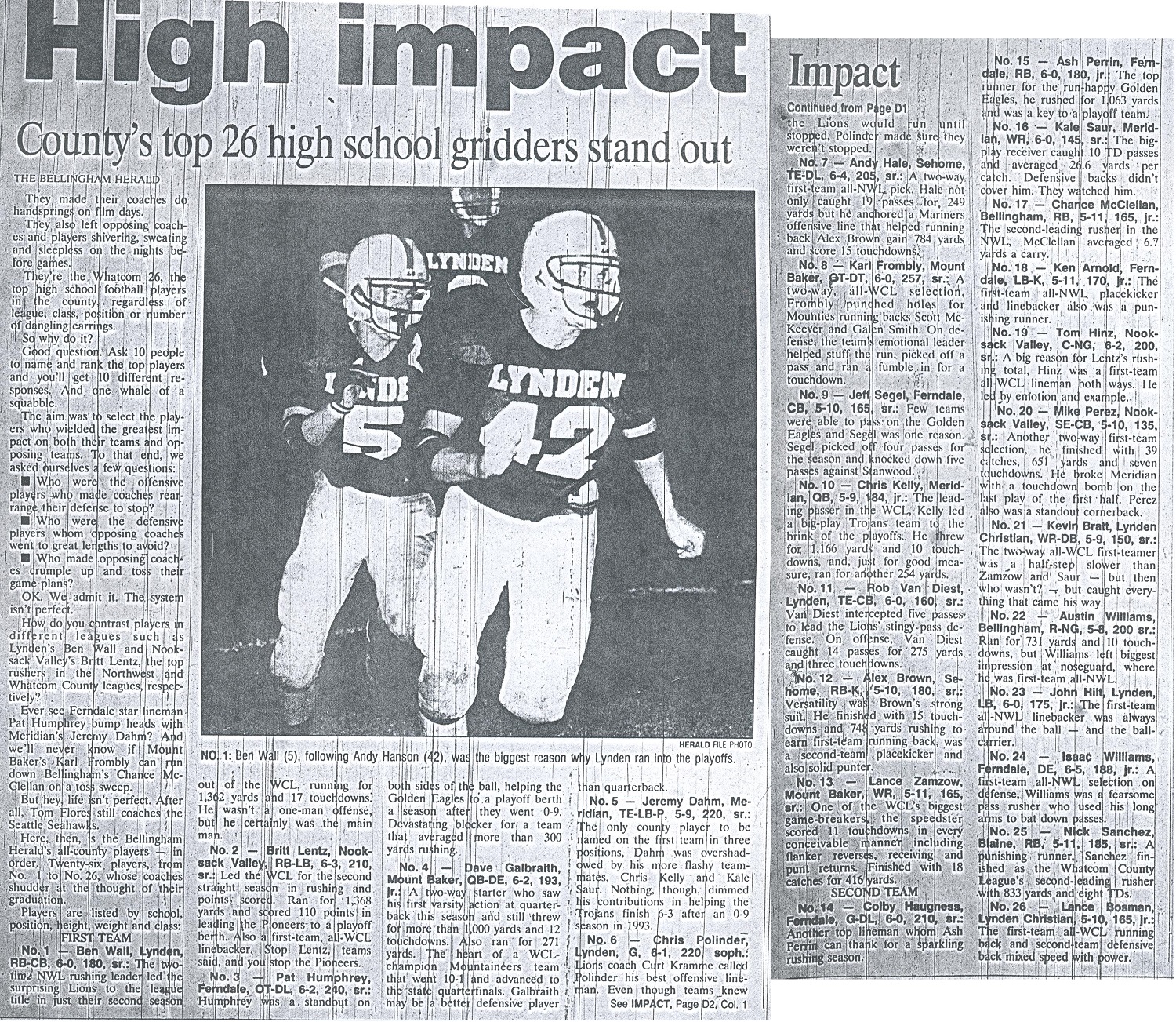 • Lynden Top 15 Yards per Reception in a Season | History of Whatcom County High School Football on Top 500 #9 – Zach Vis